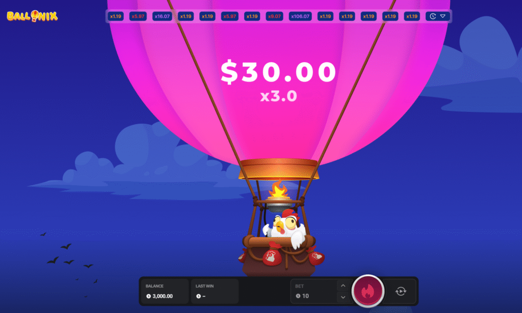 BaloniX combines fun animation with a sleek, functional interface. The whimsical balloon ascent and lovable chicken character soften the high-stakes tension, while clean graphics and visible controls ensure that the gameplay feels natural and engaging at every moment.