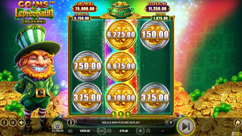 Leprechaun Coins – Hold & Win embraces the timeless mythology of Irish folklore, placing players in a world defined by luck, treasure and evil magic. The visual setting revolves around emerald-green tones, glittering gold coins, clovers and the iconic Leprechaun figure who acts as a narrative guide through the experience. The game’s compact 3×3 reel layout is designed with rich Irish imagery using bright green and gold highlights to evoke the classic legend of treasure hidden at the end of the rainbow. This clear thematic direction ensures that the game’s identity is communicated instantly and consistently throughout gameplay.