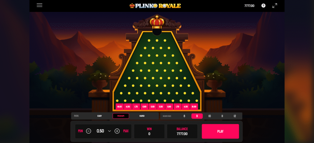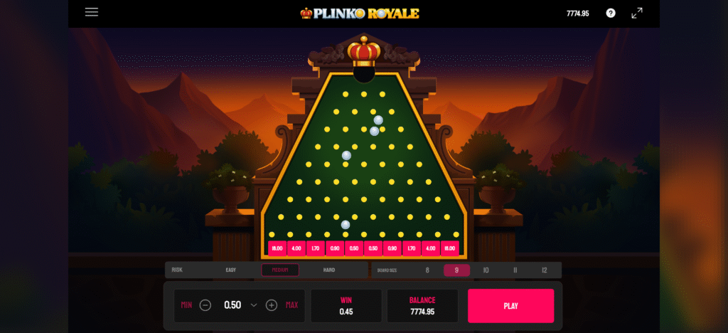 The animation in Plinko Royale centers around the physics-based movement of the ball, serving as the primary source of visual engagement. The ball’s descent through the pegs is fluid and responsive, creating an organic rhythm that captures the player’s attention. Secondary animations, such as peg interactions and subtle board reactions, enhance the sense of motion without compromising visual clarity. The overall flow feels deliberate and well-paced, allowing each drop to unfold with a readable progression.